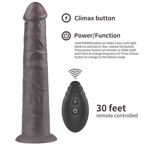 • Press the remote control to make the 10 inches black dual layered silicone rotator vibrate