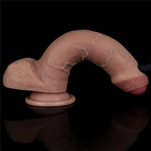 • The 8 inches dual layered silicone cock adorned with raised veins