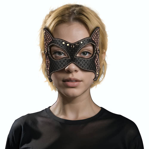 To accentuate its beauty and unique character, a ring of antique bronze rivets encircles the mask, drawing attention to its alluring features. Whether you're embracing your inner desires or simply adding a touch of seduction to your play, this mask is your key to a world of sensory delight.