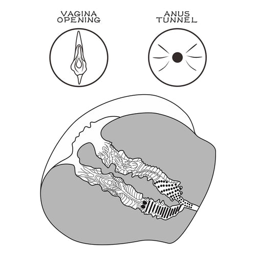 The designed vaginal tunnel has a nest of nubs waiting to stroke you as you slide deep inside her. The butt hole is a little tighter and full of numerous curves.