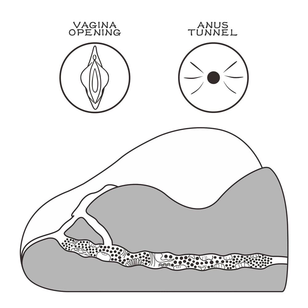 • The vagina and anus entrance of the streetgirls dual path masturbator