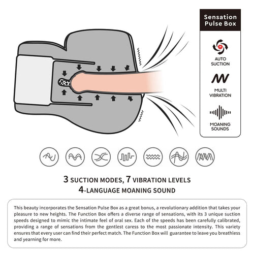 With the integration of realistic moaning sounds and 7 vibration frequencies, this Sensation Pulse Box go even further to ensure a truly mind-blowing experience, evoking irresistible pleasure with every skin-friendly experience.