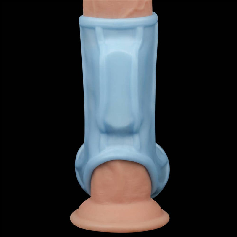 • Vibrating penis ring extender with scrotum sleeve for thrilling fun